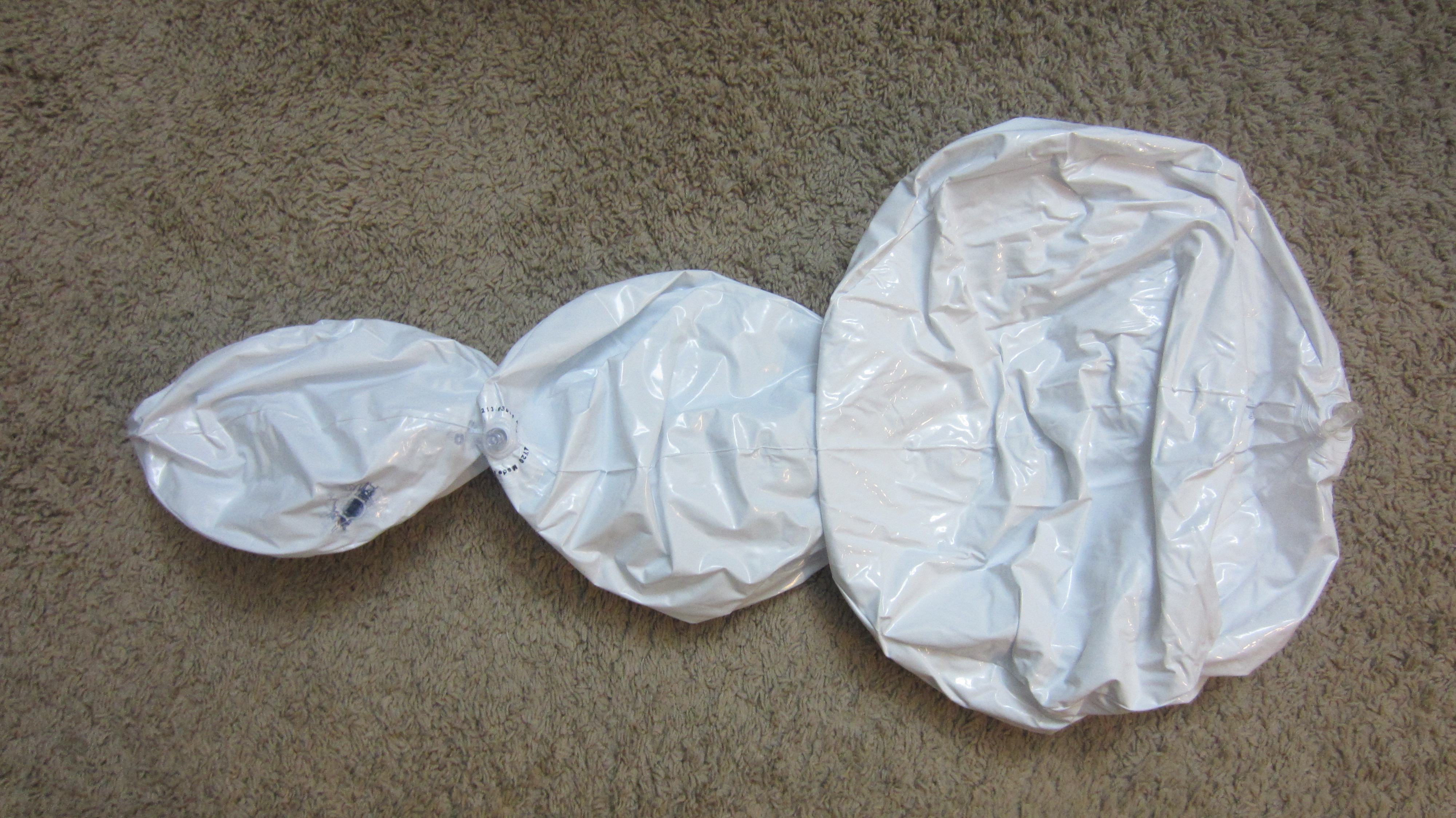 After two gluing sessions, we had our three beach balls attached to each other and could move on to inflating them.