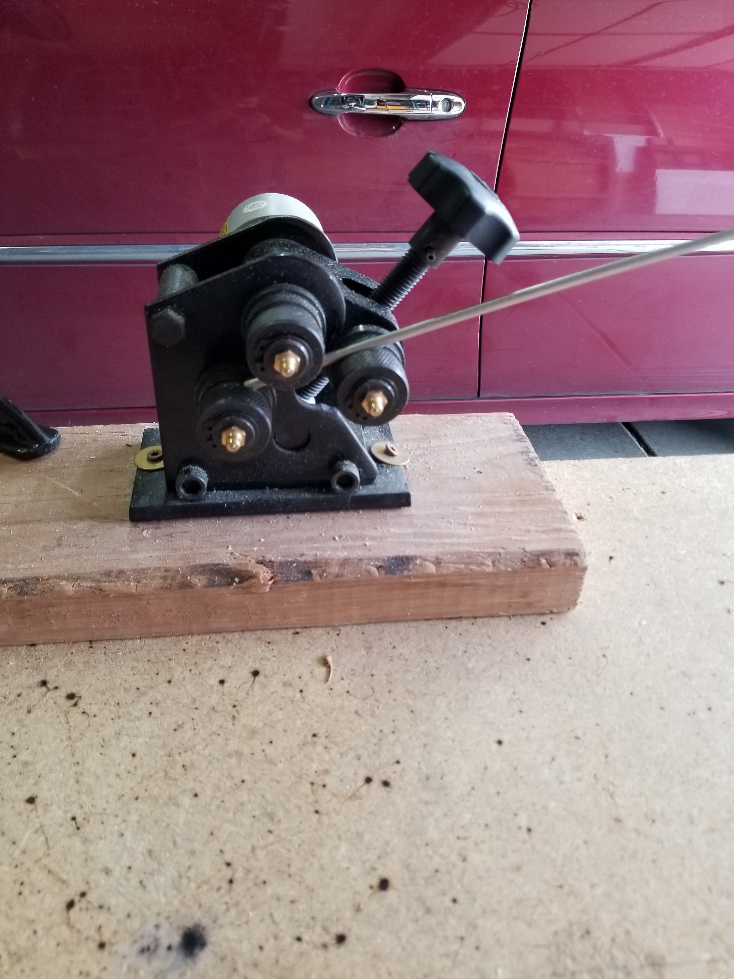We purchased a “planetary ring roller” from Harbor Freight for about $70 dollars (painful but we really needed the tool to do this well) and used this to roll the metal into hoops of appropriate sizes. The quality of this tool was definitely questionable and we had multiple issues with it (missing cotter pin for attaching the handle, highly imprecise controls for setting ring diameter, adjustment knob breaking twice, adjustments “slipping” over time, frame cracking significantly, inability to roll rings down to the smallest diameter advertised on the box) but it did serve its purpose. If we had to do it again, we might splurge on a more expensive but higher quality tool, though it really isn’t something we have use for beyond this project.
